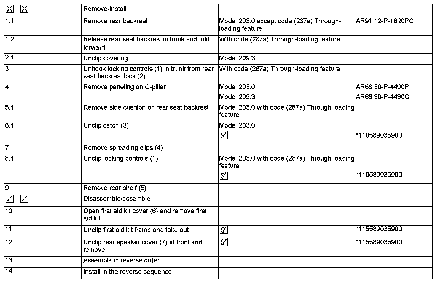AR68.30-P-4580P Remove/Install and Disassemble Parcel Shelf