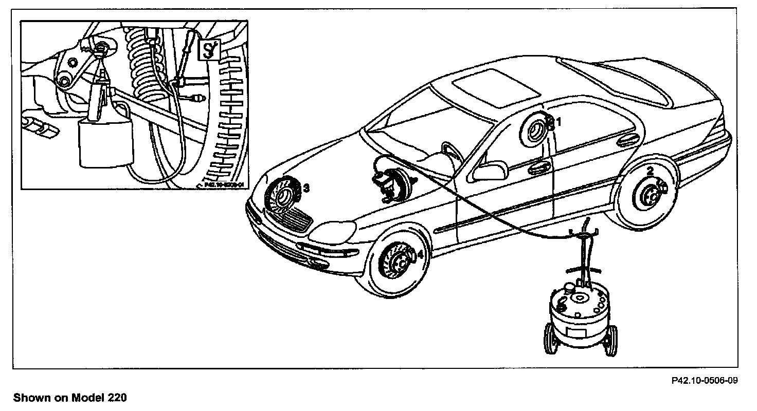 NOTE: Models 215, 220: As additional assistance when bleeding, high-pressure bleeding can be performed by pressing the brake pedal.