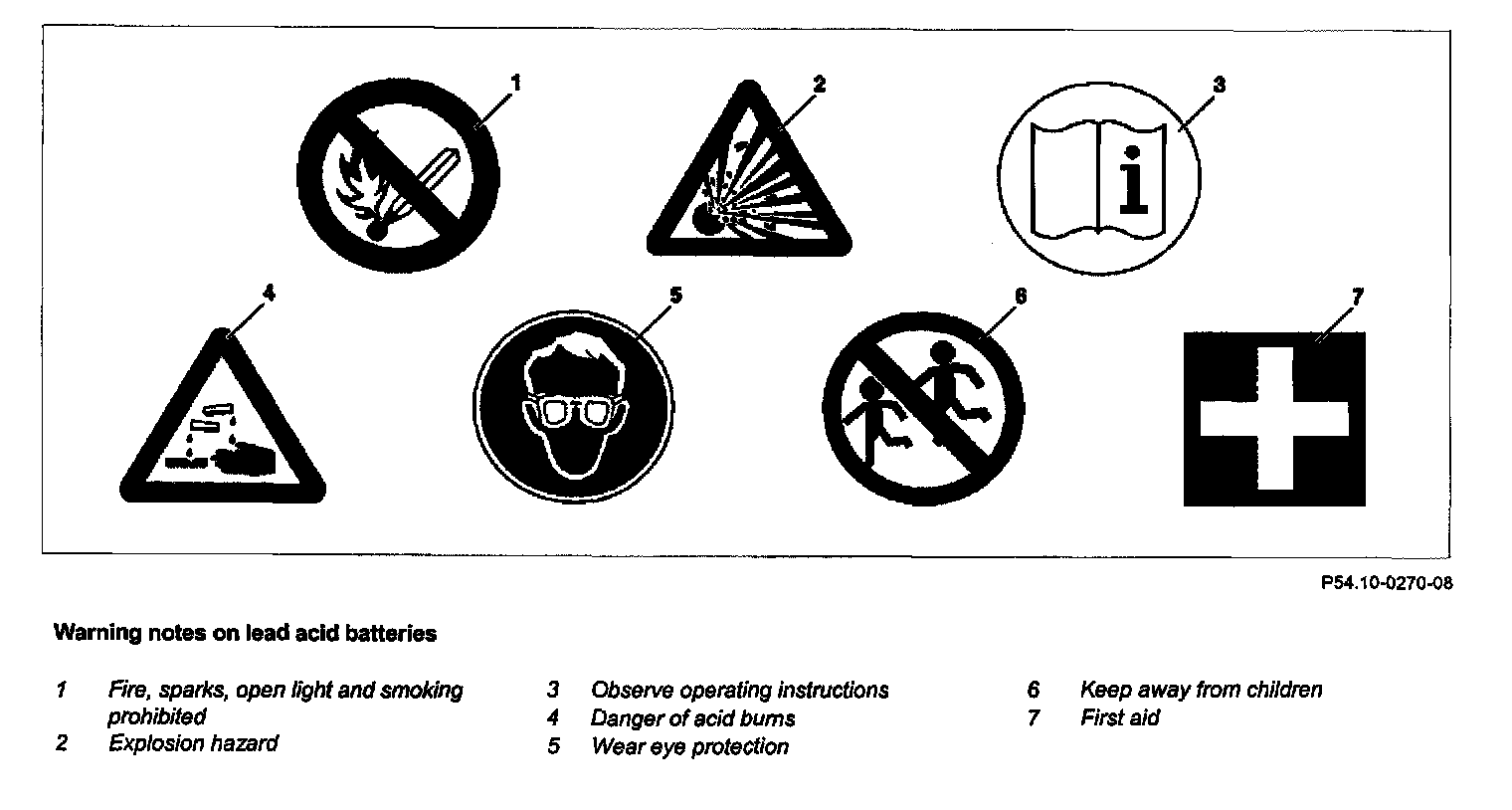 - Store battery acid only in suitable, appropriately marked containers.