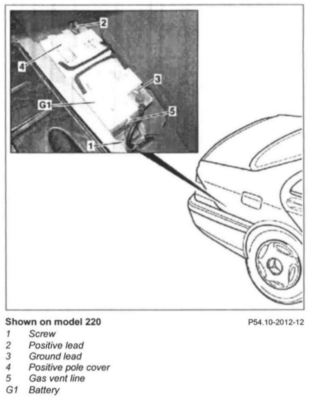 6 Remove gas vent line (5) from battery (G1)