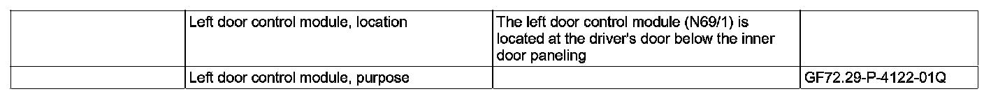 GF72.29-P-4122Q Left Door Control Module, Location/Purpose