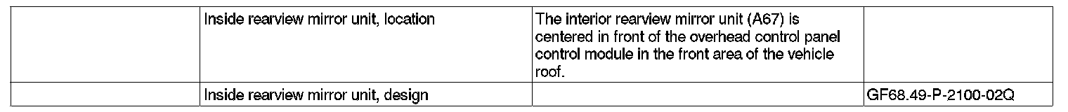 GF68.49-P-2101QP Interior Rearview Mirror Unit, Location/Design