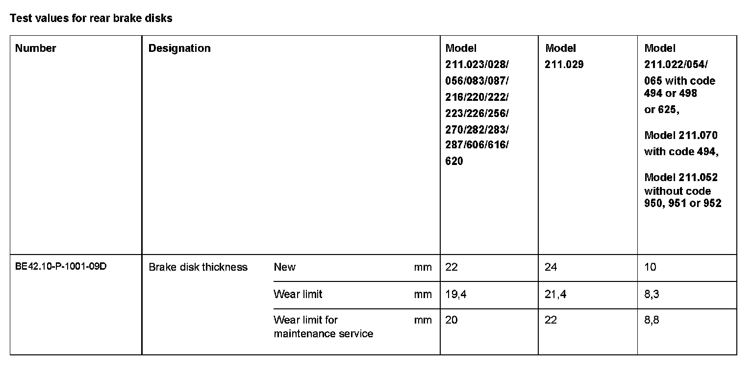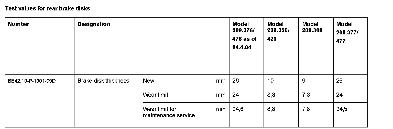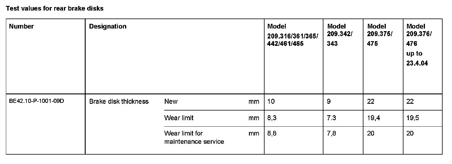 BE42.10-P-1000-09D Test Values For Rear Brake Disks