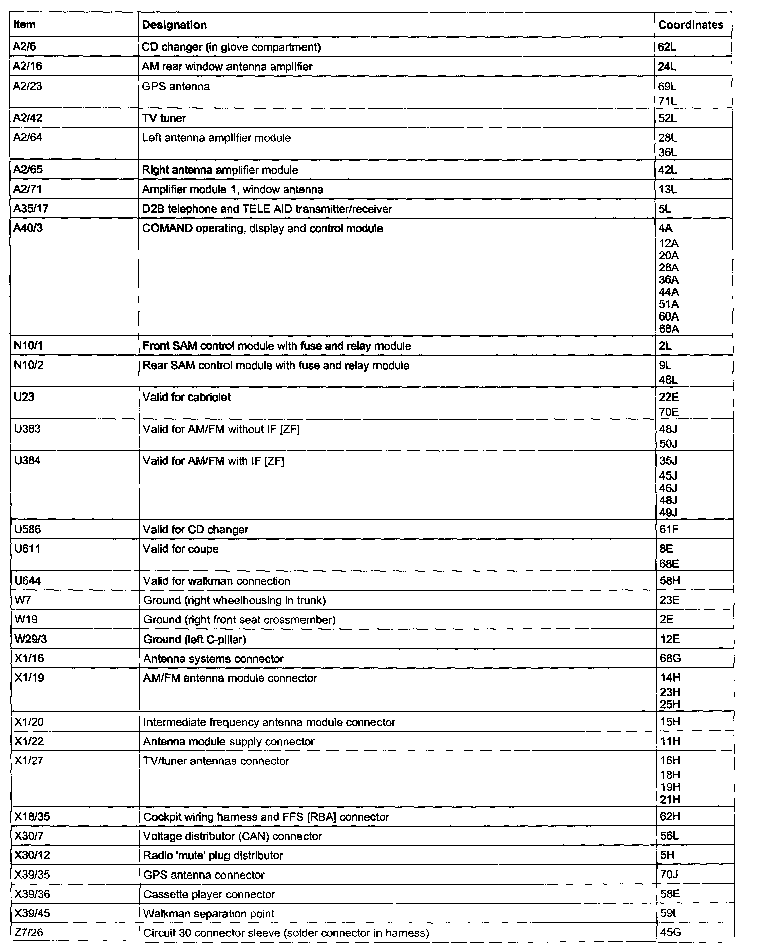Component Description/Coordinates, Z28/59: