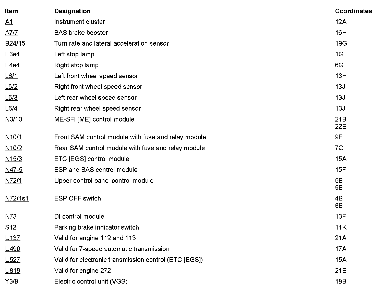 Component Description/Coordinates, A1 To Y3/8: