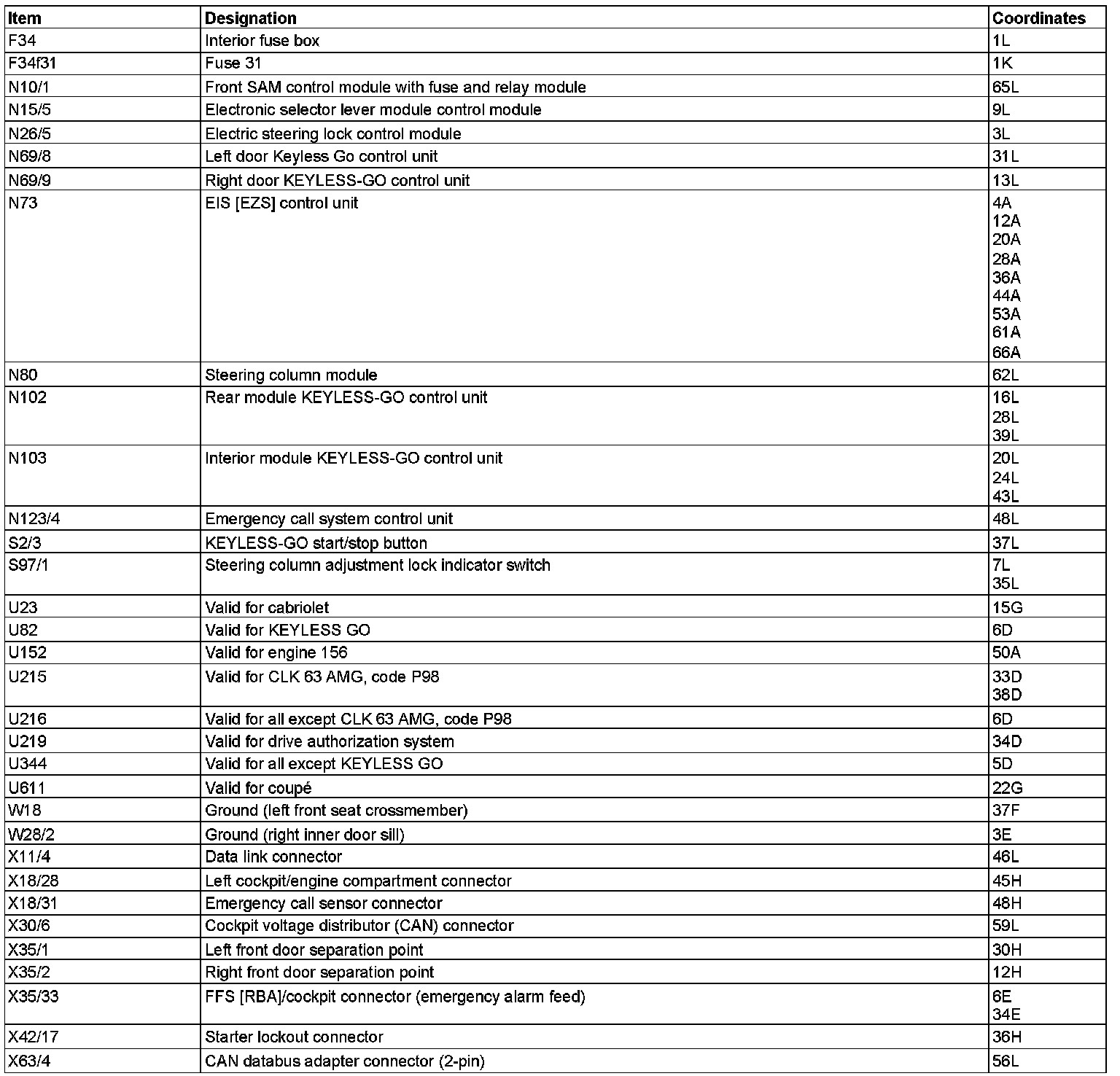 Component Description/Coordinates, F34 To X63/4: