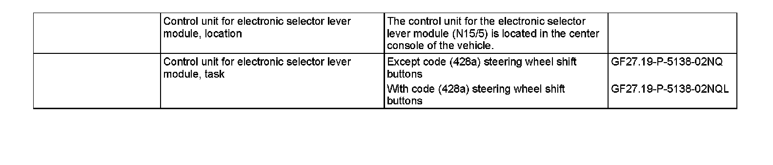 GF27.19-P-5140NQ Electronic Selector Lever Module Control Unit, Location/Task
