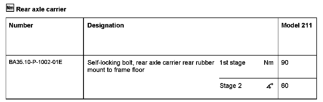 5 Tighten new bolt according to tightening instructions (see table above).