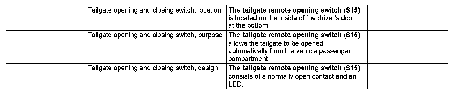 GF80.20-P-1107TA Tailgate Opening Switch, Location/Purpose/Design