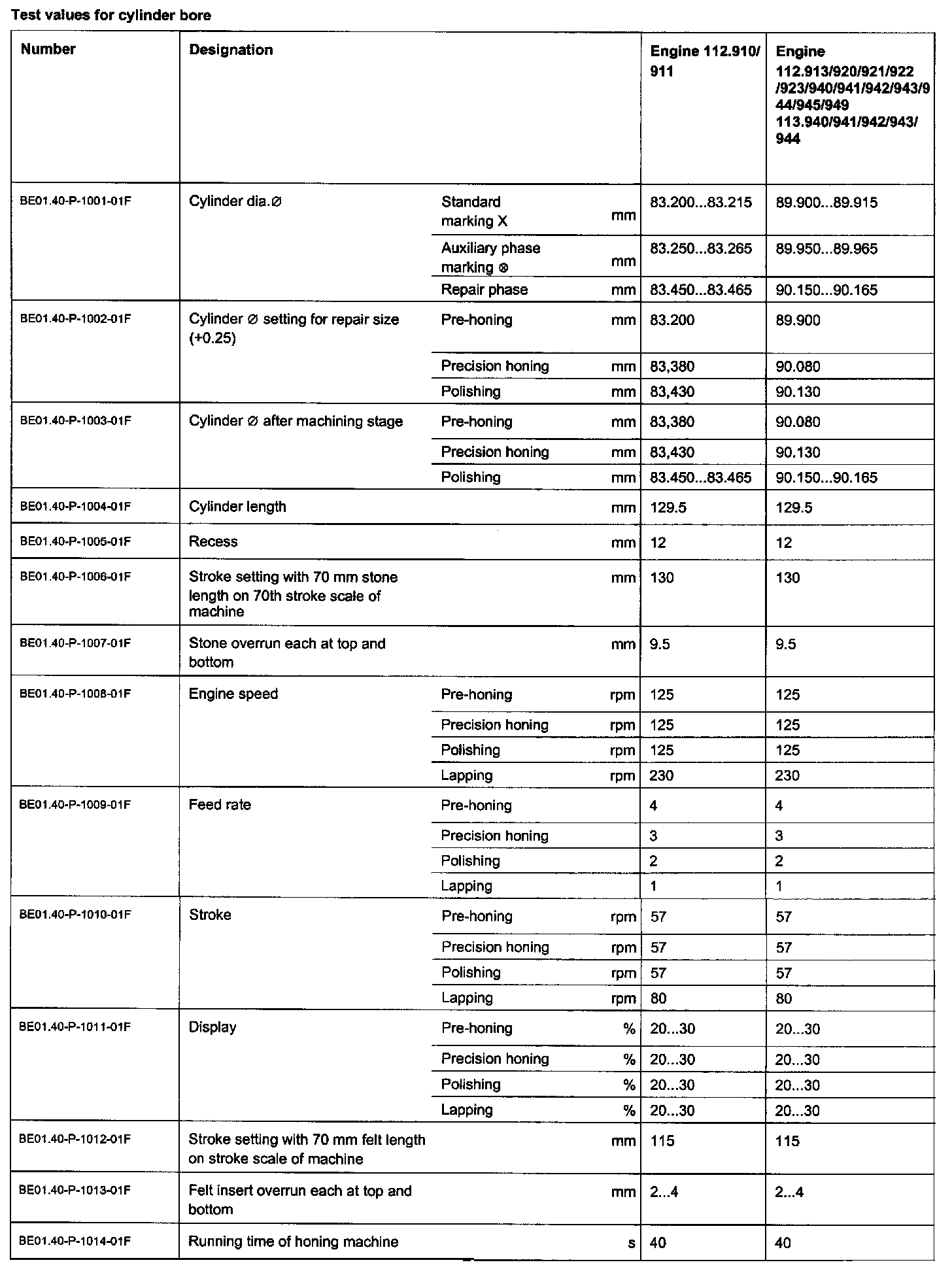 Test Values For Cylinder Bore