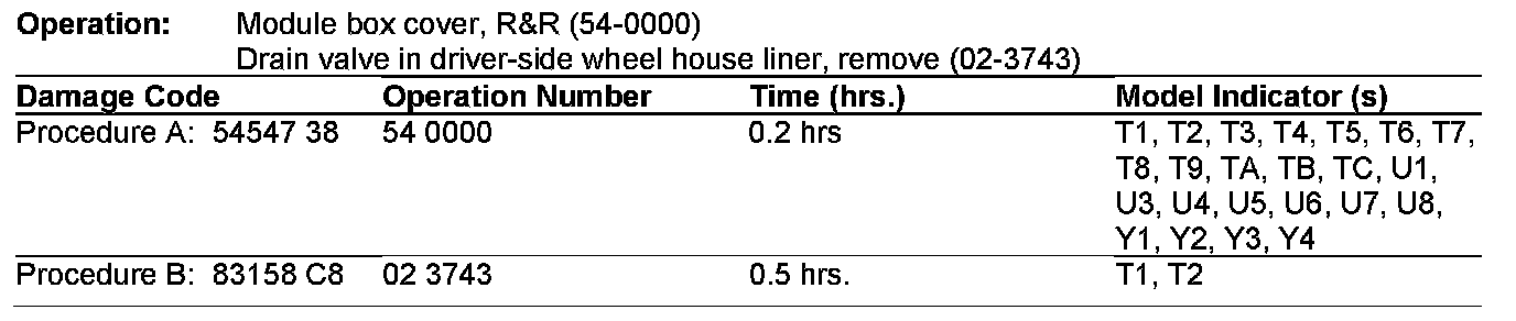If you receive customer reports in the above model vehicles of malfunctions in the electrical system, this may be caused by an incorrectly installed module box cover or a blocked drain valve (only Model 211 up to VIN A097230) causing water to enter the vehicle interior, front SAM and/or fuse box. To resolve, perform the steps below.