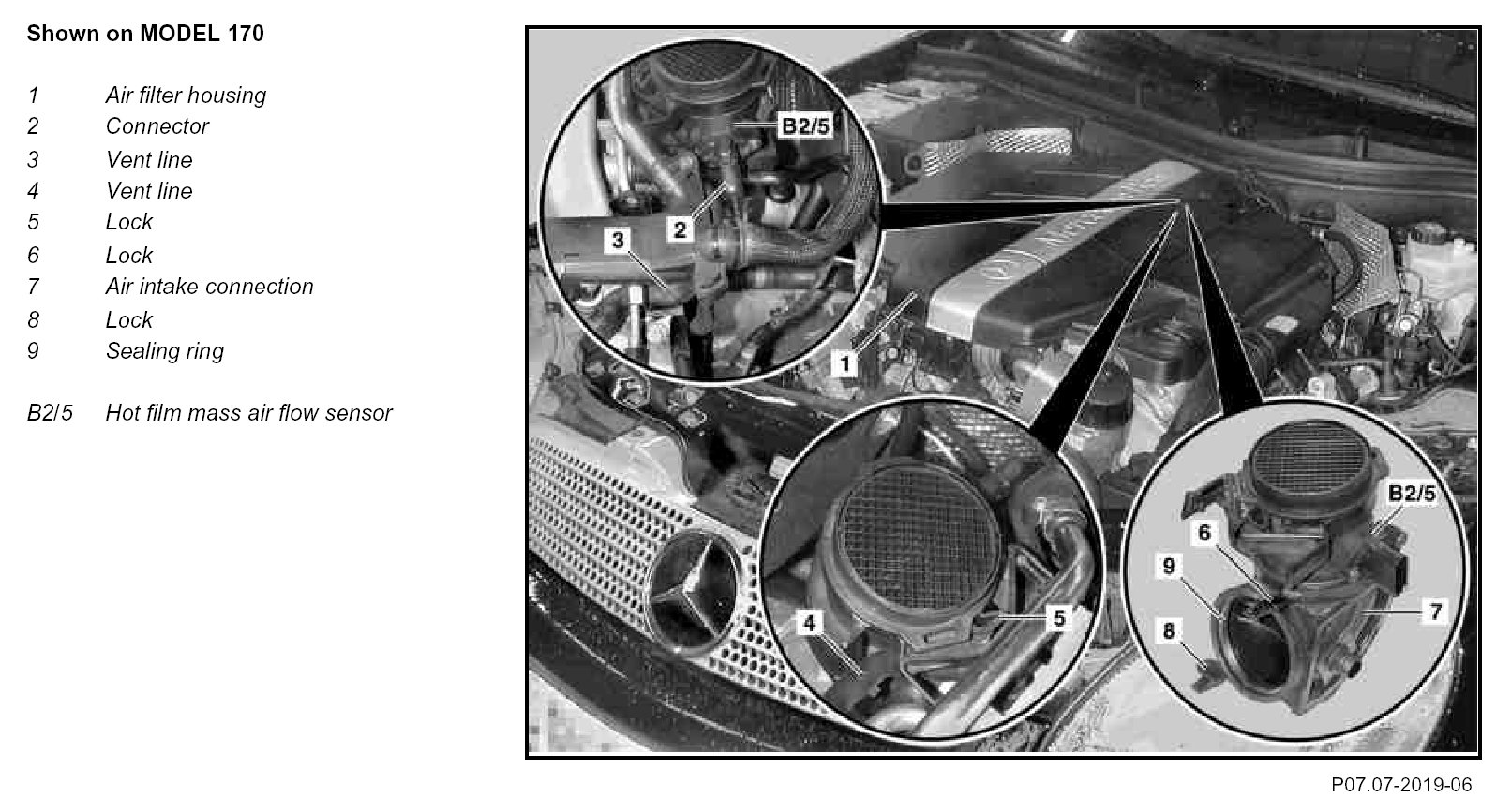 AR07.07-P-1454SV Remove/Install Hot Film Mass Air Flow Sensor Together With Air Intake Pipe
