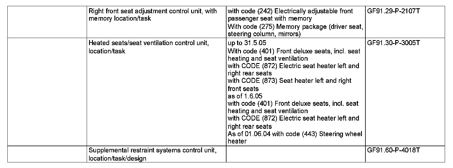 N32/1 Driver front seat adjustment control unit with memory