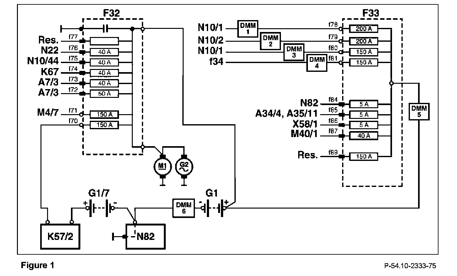 ^ Remaining Amperage = Sum of F33 lower electrical branch (N82, A34/4, A35/11, X58/1, and M40/1)