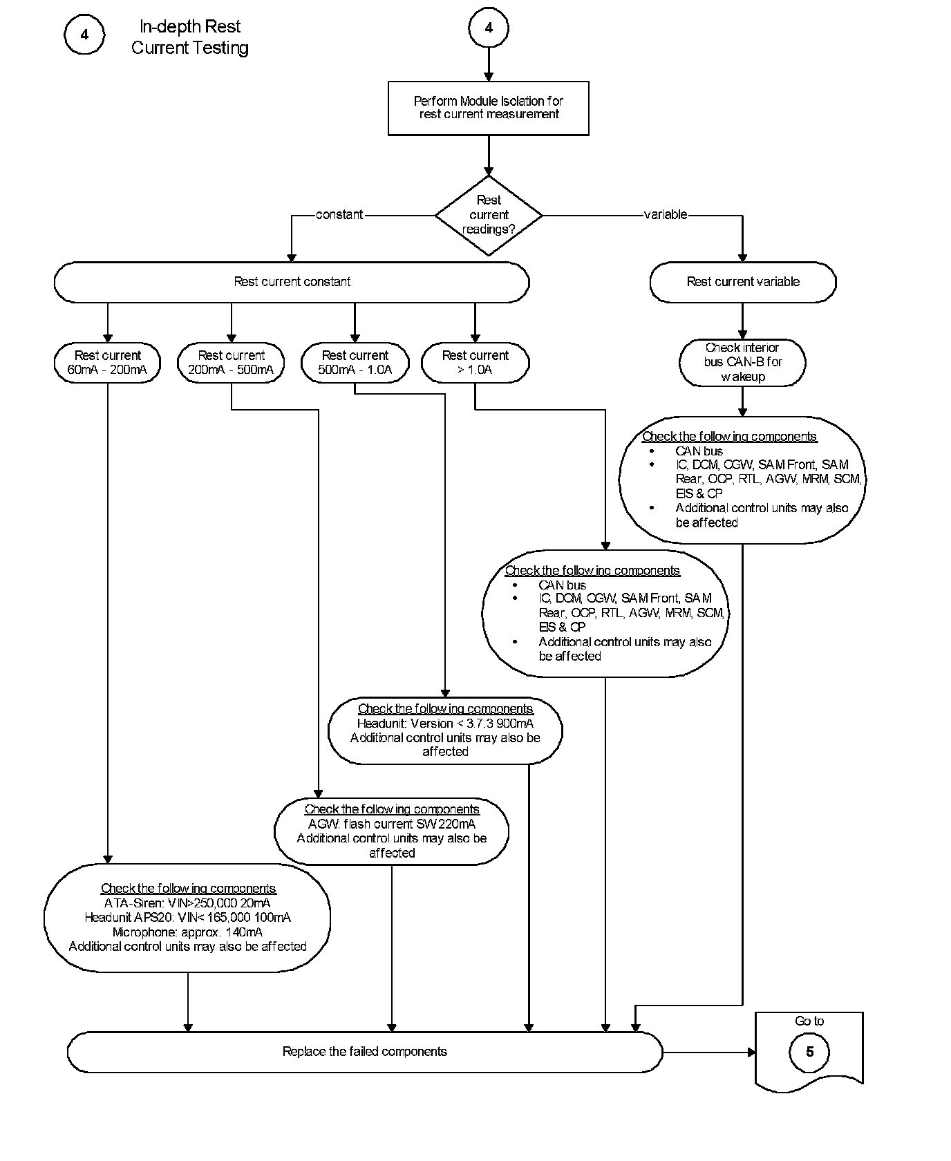 > Repeat the rest current measuring procedure if the rest current is > than 60 mA.