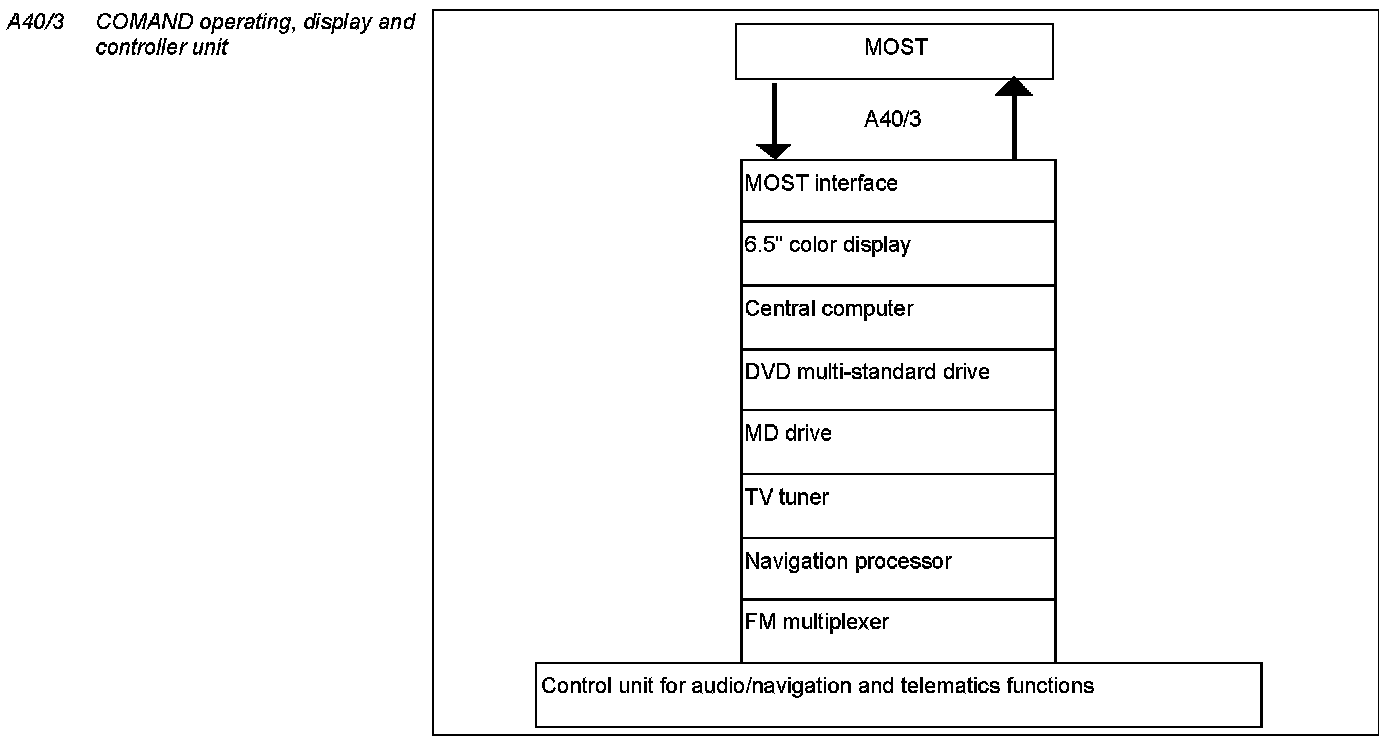 The COMAND operating, display and controller unit (A40/3) has a digital interface to the Media Oriented System Transport (MOST).
