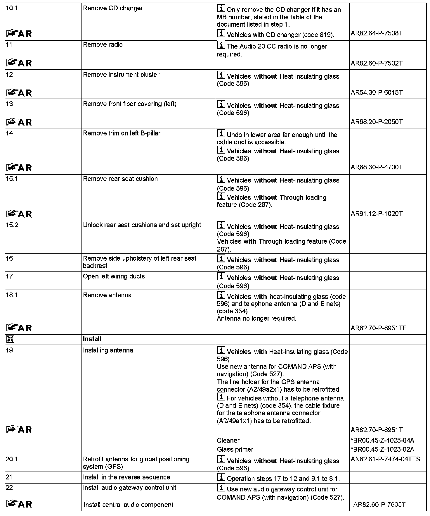 - Vehicles up to model year 2003 (code 803) with Audio 20 CD radio