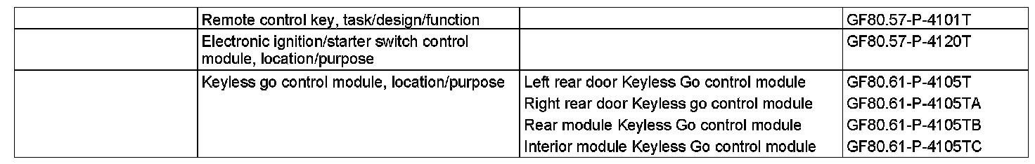 3. The locating signals are transmitted from the keyless go trunk antenna A2/35, the left rear keyless go door control module (N69/8), the right rear keyless go door control module (N69/9) and the passenger compartment keyless go control module (N103).