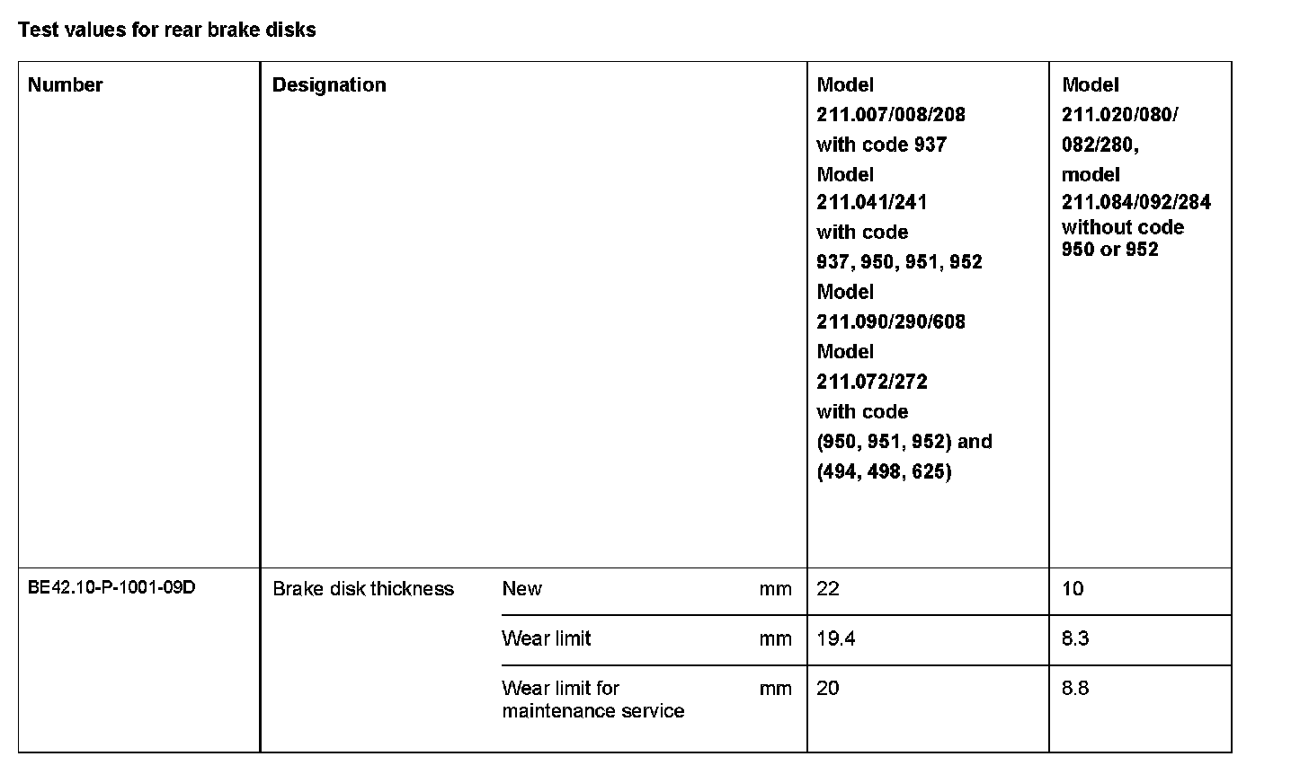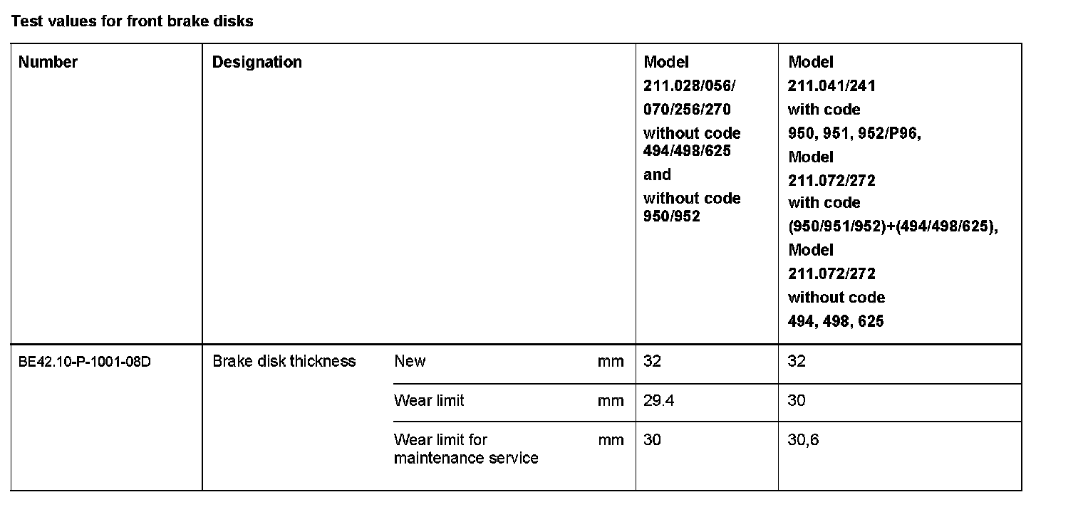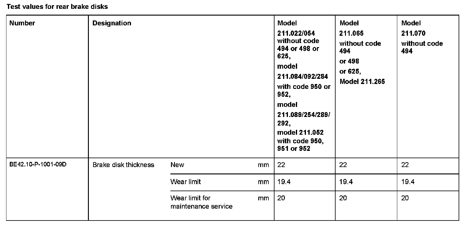 Test Values For Rear Brake Disks: