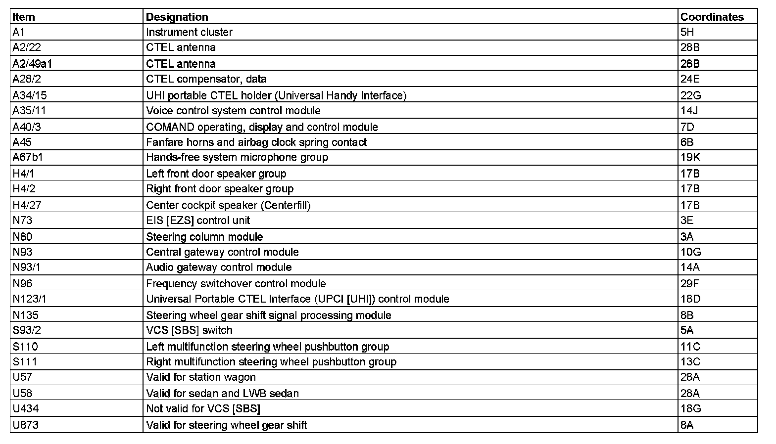 Component Description/Coordinates, A1 To U873: