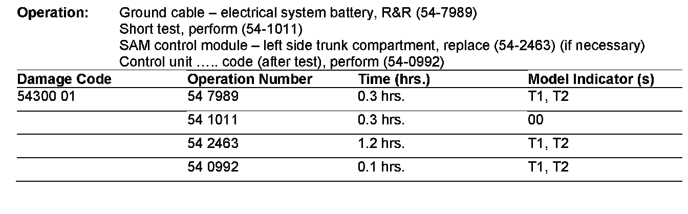 If you receive customer reports in the above model vehicle VIN range of any or all of the subject complaints, the Rear Signal Acquisition and Actuation Module (SAM) may need to be replaced. Follow the procedure below to resolve.