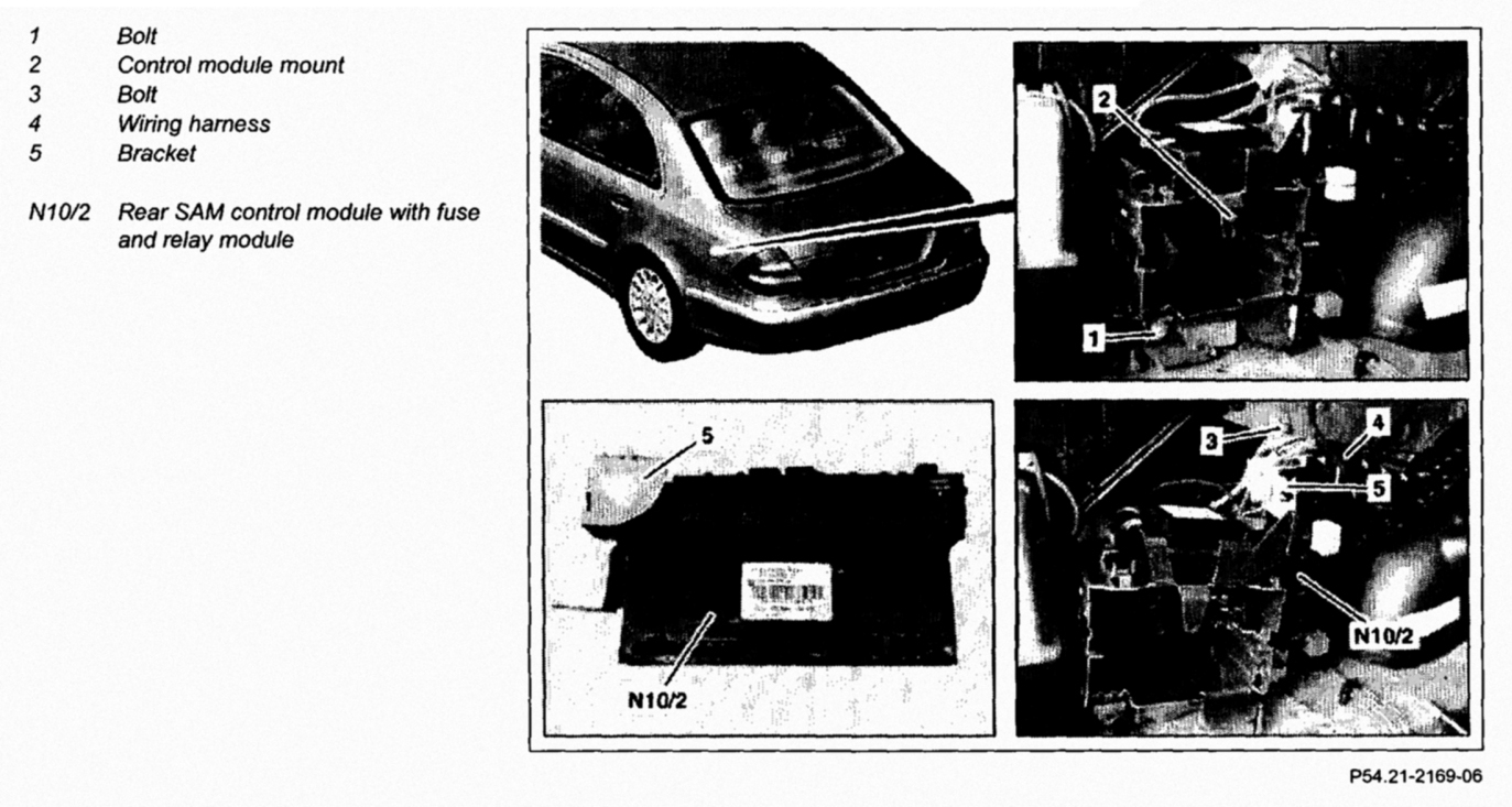- Only when installing new rear SAM control module with fuse and relay module (N10/2)