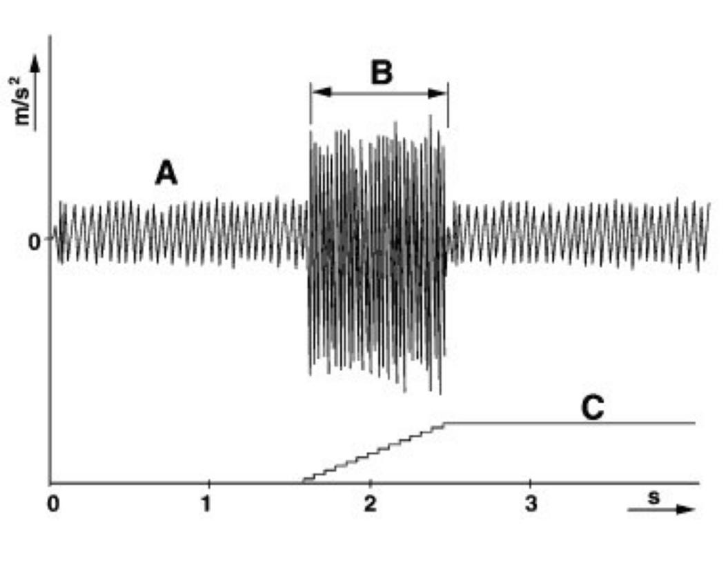 A Engine running without misfiring, acceleration values within tolerance range (up to approx. 3 m/s2 )