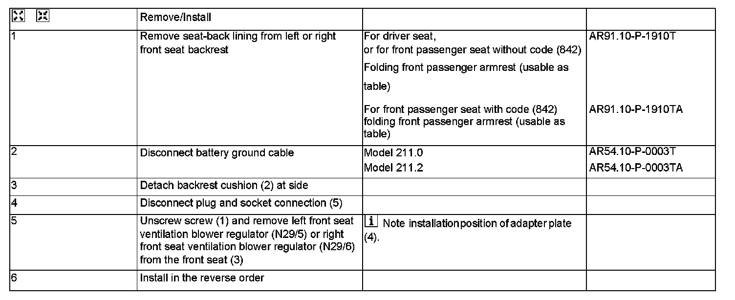 AR91.30-P-1910T Remove/Install Blower Regulator For Seat Ventilation Motors In Front Seat