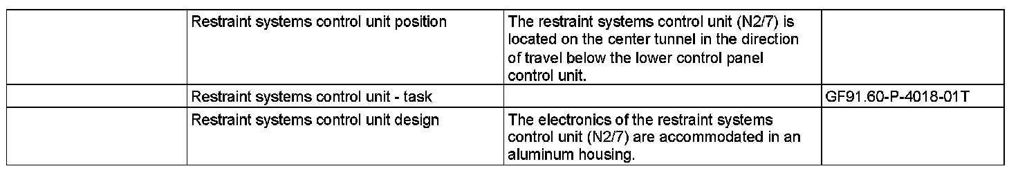 GF91.60-P-4018T Supplemental Restraint Systems Control Unit, Location/Task/Design