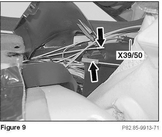 The fiber optic cable leads (arrows, Figure 9) for the Navigation system will be found in harness tray disconnected (open).