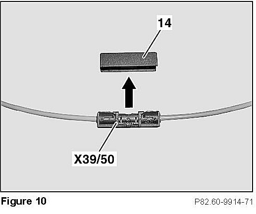 ^ Remove (unclip) cover (14, Figure 10) from MOST fiber optic cable connector (X39/50).