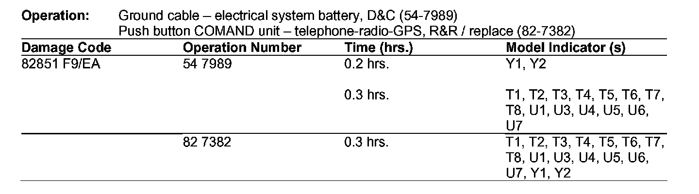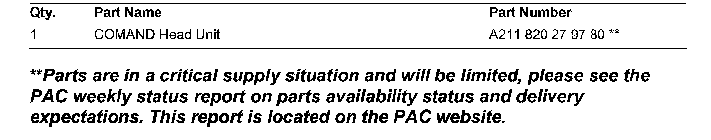 If you receive customer reports in the above model vehicles of the below conditions with COMAND head unit part no. A211 820 23 97, the head unit must be replaced with part number A211 820 27 97 or A211 820 27 97 80. Refer to WIS Document AR 82.85-P-10001X for Model 219 and AR 82.85-P-10001 for Model 211.
