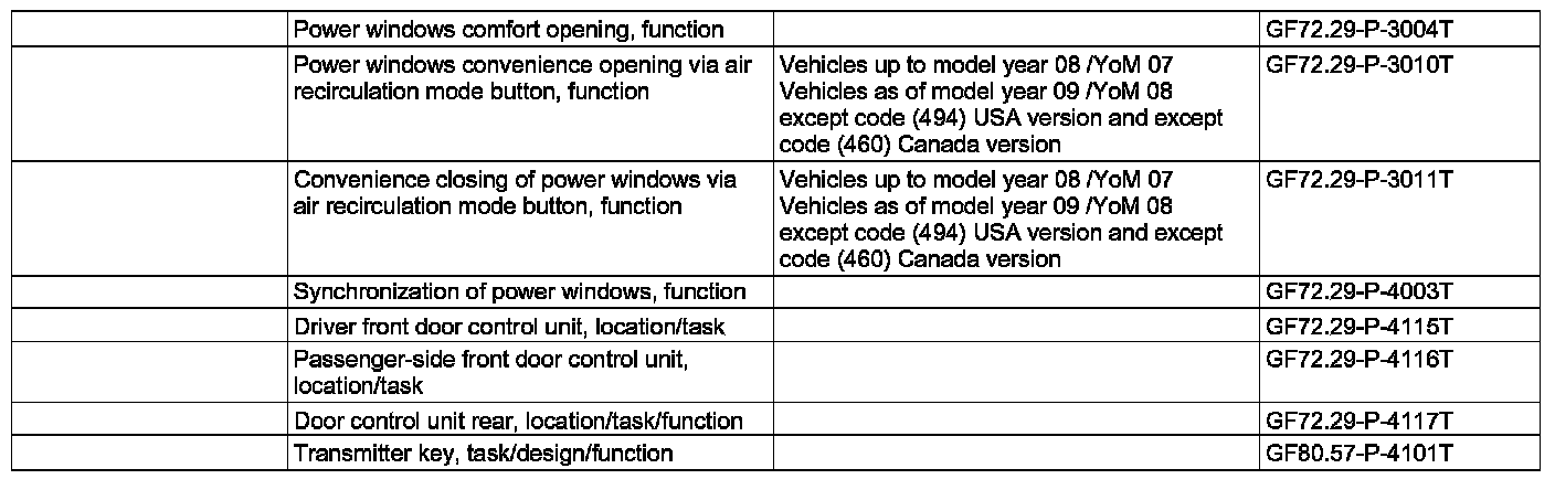 GF72.29-P-3005T Power Windows Comfort Closing, Function
