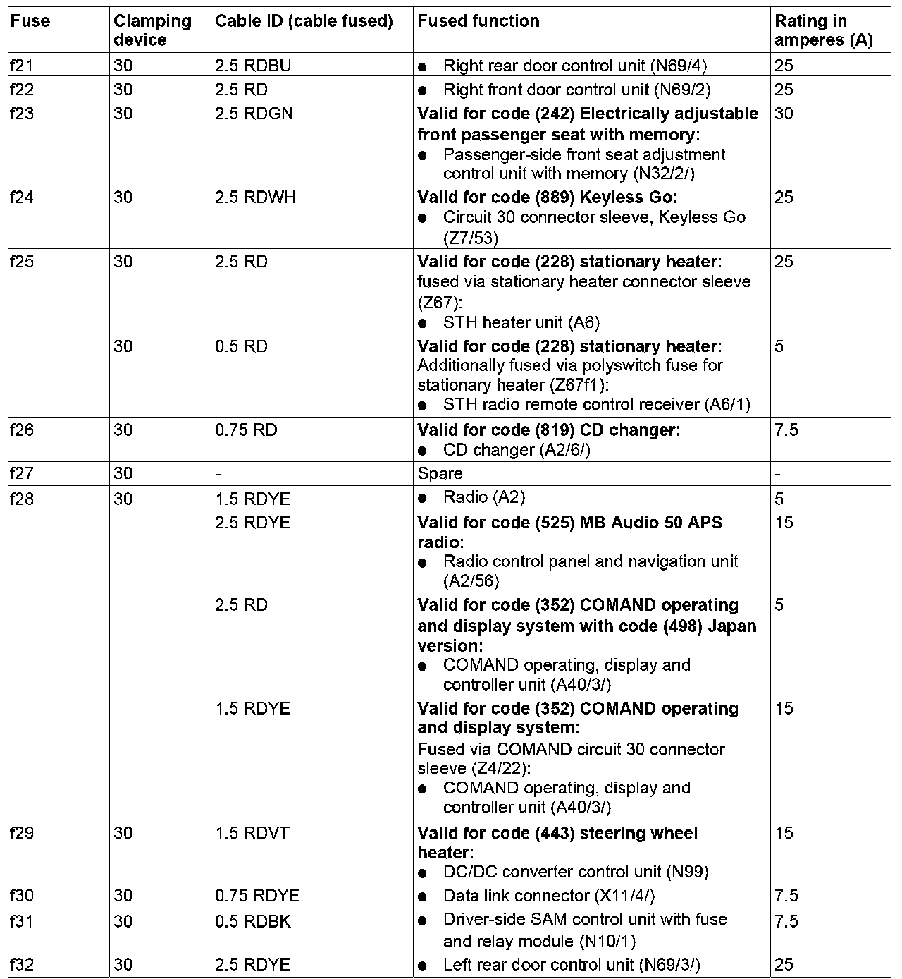 GF54.15-P-1256-04TB Fuse Assignment of Fuse Box In Interior Compartment on Driver's Side