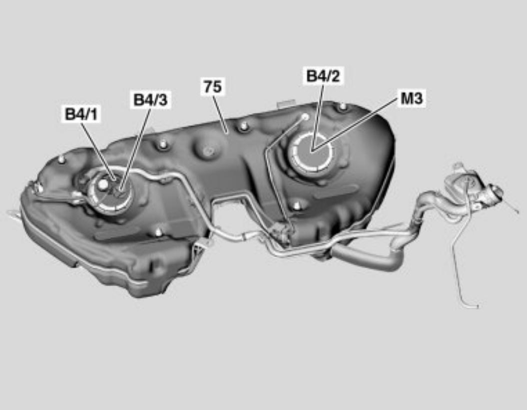 The fuel tank pressure sensor is integrated into the closing plate of the left fuel tank chamber.