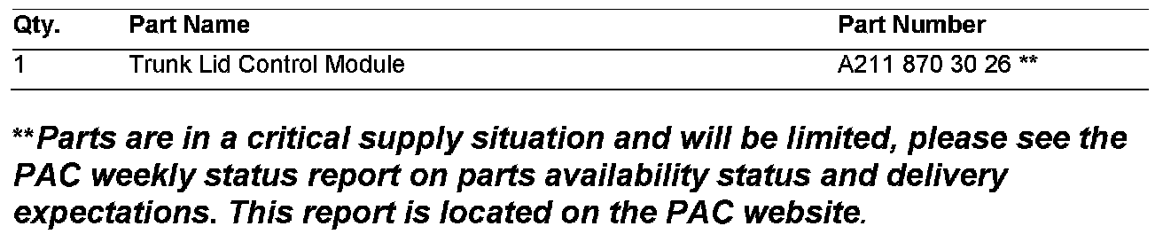 To resolve, replace the trunk lid control module (N121) with the revised part listed below as per WIS document AR88.50-P-5300T.