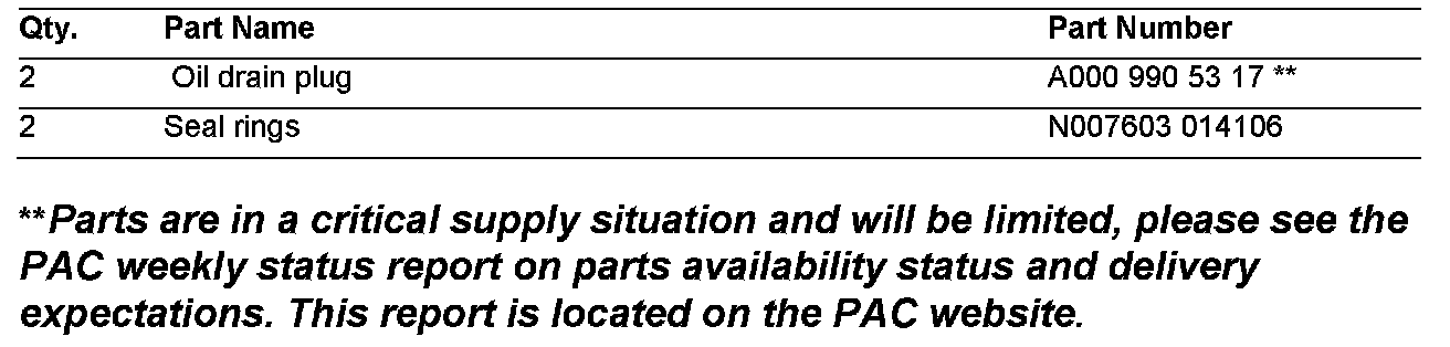 DO NOT reuse engine oil drain screws as this can lead to leaking. These screws are micro-encapsulated and may only be used ONCE. To alleviate this problem, the oil drain screws must be replaced each time the engine oil is changed.
