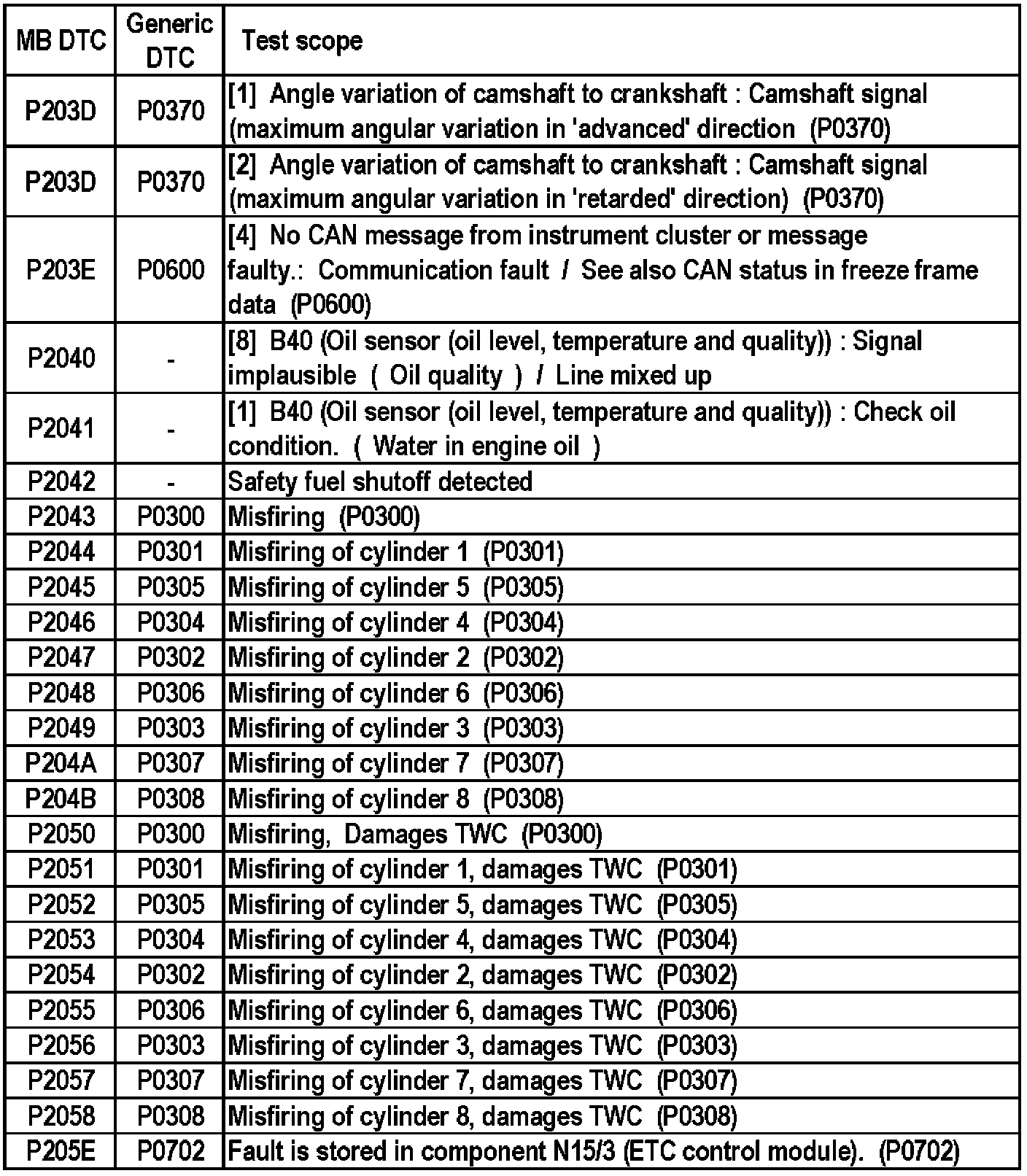 MB DTC P203D - P205E: