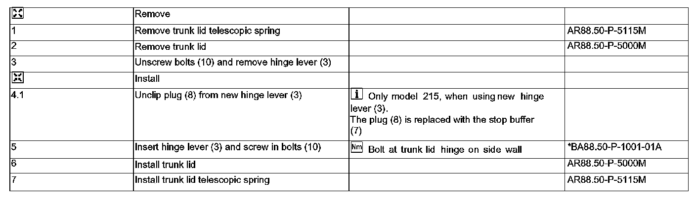 AR88.50-P-5120MA Remove/Install Hinge Lever For Trunk Lid