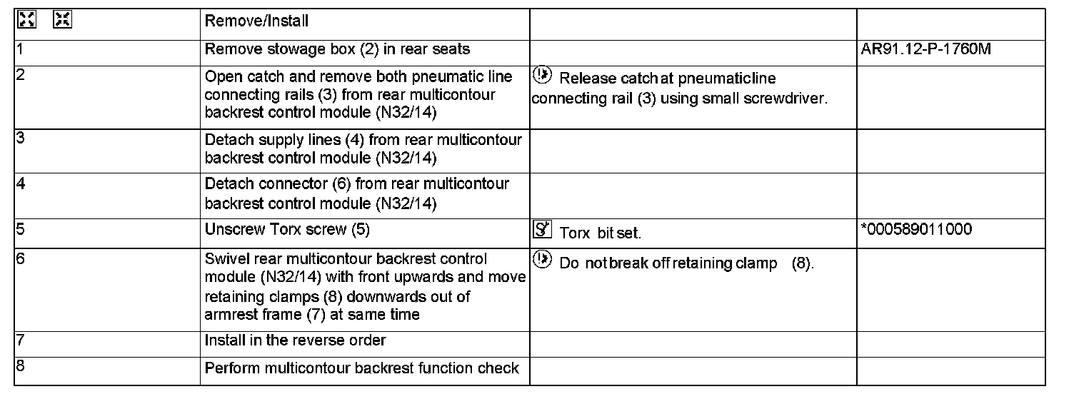 AR91.25-P-1755M Remove/Install Rear Seat Multicontour Backrest Control Module