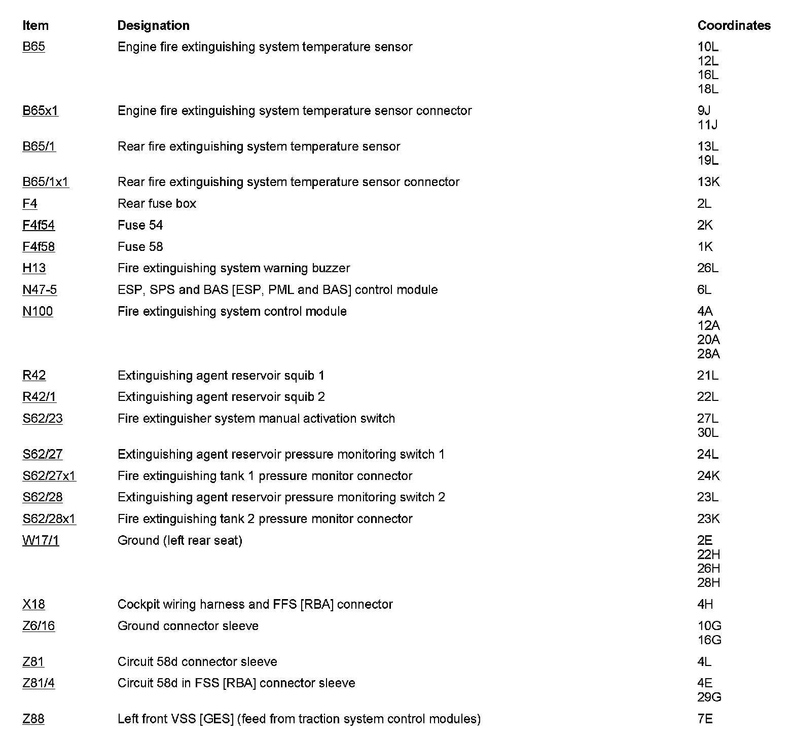 Component Description/Coordinates, B65 to Z88: