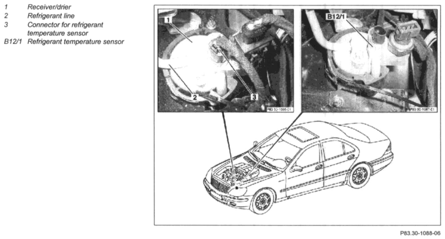 - Refrigerant temperature sensor on receiver/drier: 6 N.m