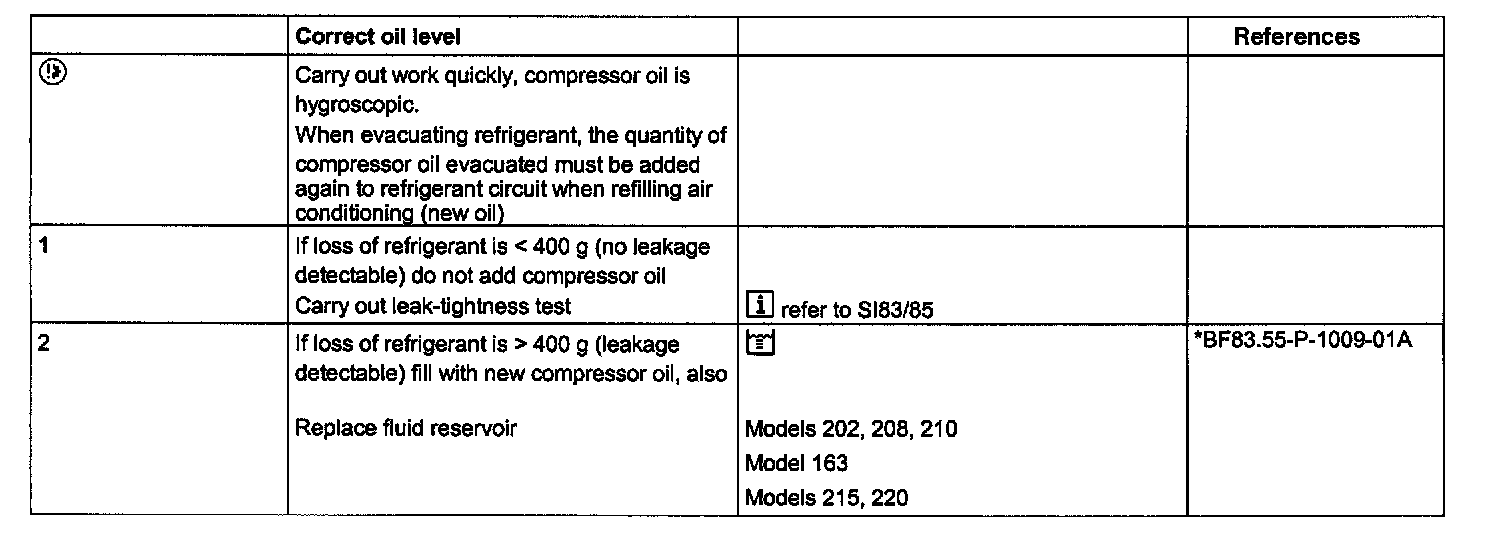 AR83.30-P-5251E Correct Oil Level In AC System Following Repair or Slow Refrigerant Loss