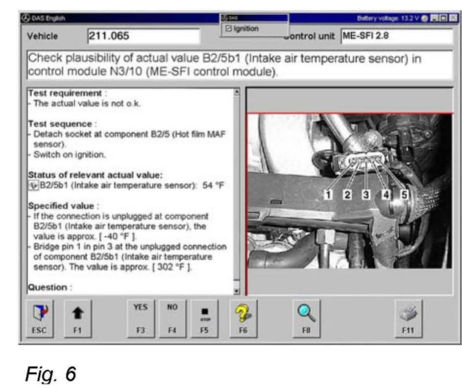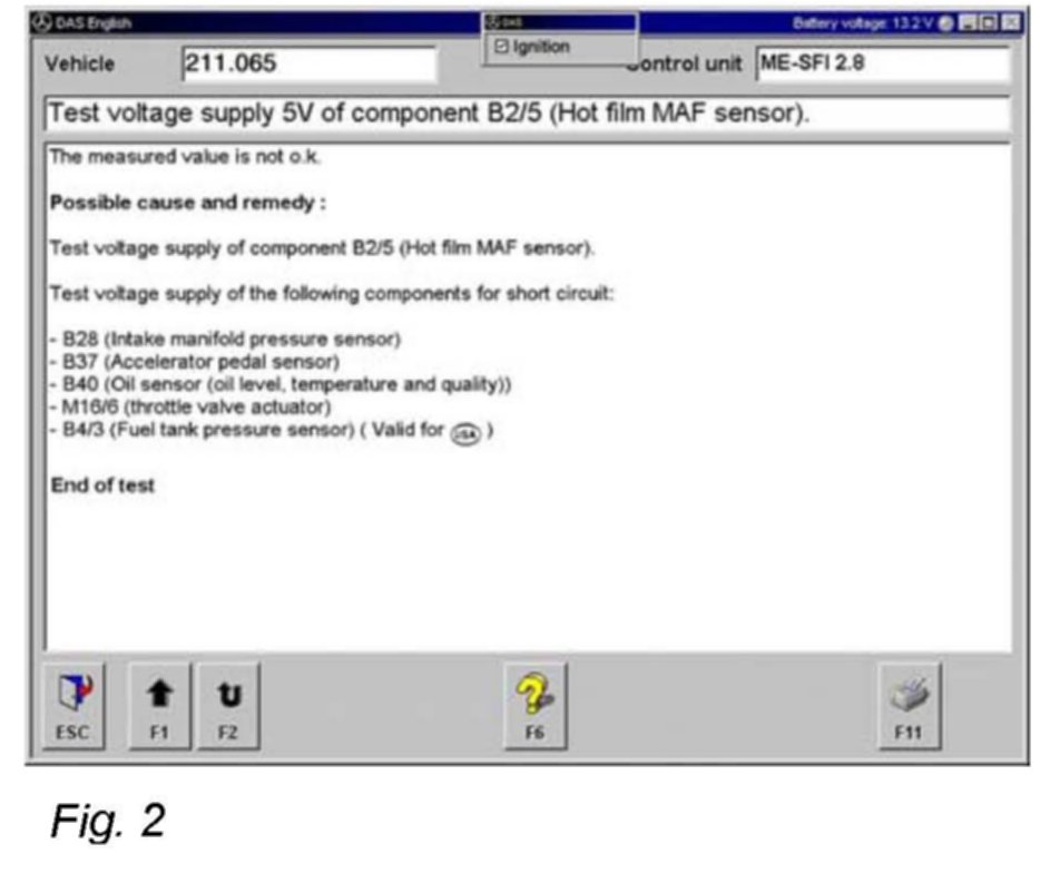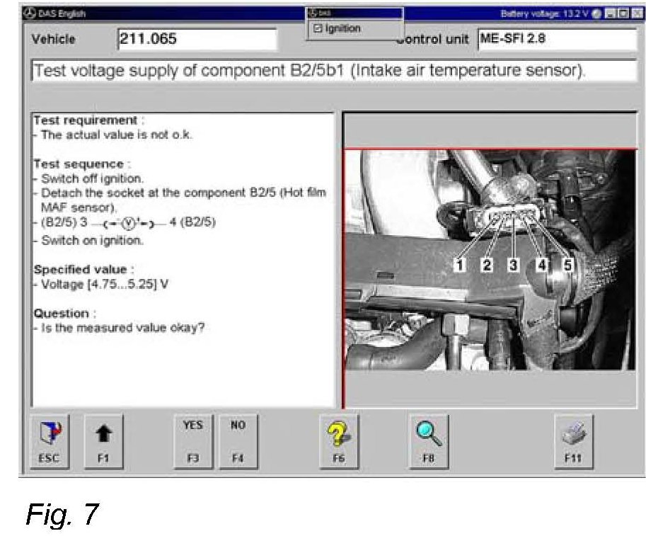 Step B1: Additionally please check the voltage supply of component B2/5 (MAF sensor) also with running engine to extend this test on higher temperature and vibration conditions of the MAF sensor.