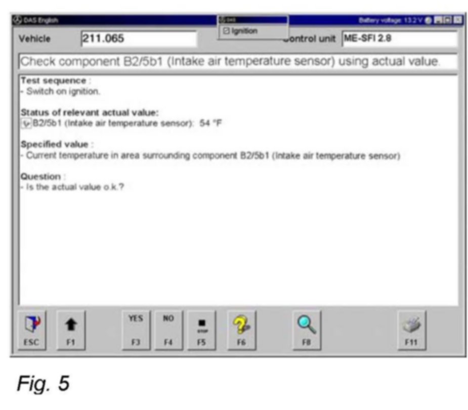 Step D2: Check plausibility of actual value B2/5b1 (Intake air temperature sensor) in control module N3/10 (ME-SFI control module).