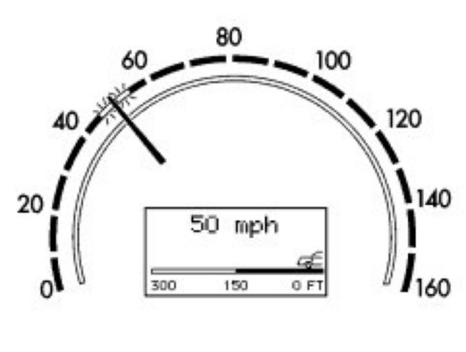 If the Distronic if activated for example at 50 mph, only one or segments on the tachometer light up in the area of the stored speed of 50 mph in order to show the driver the indicated speed.