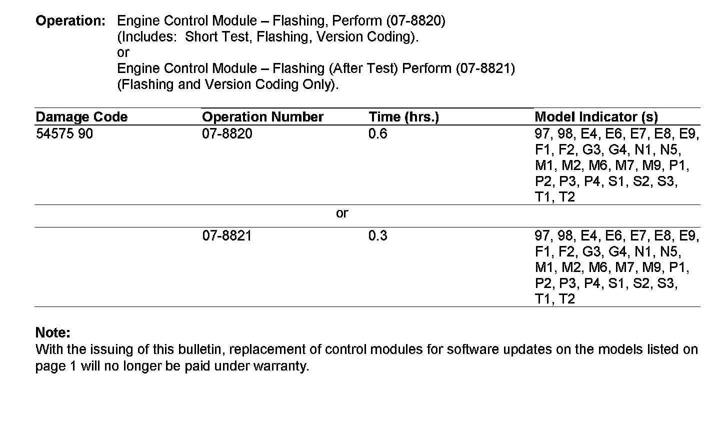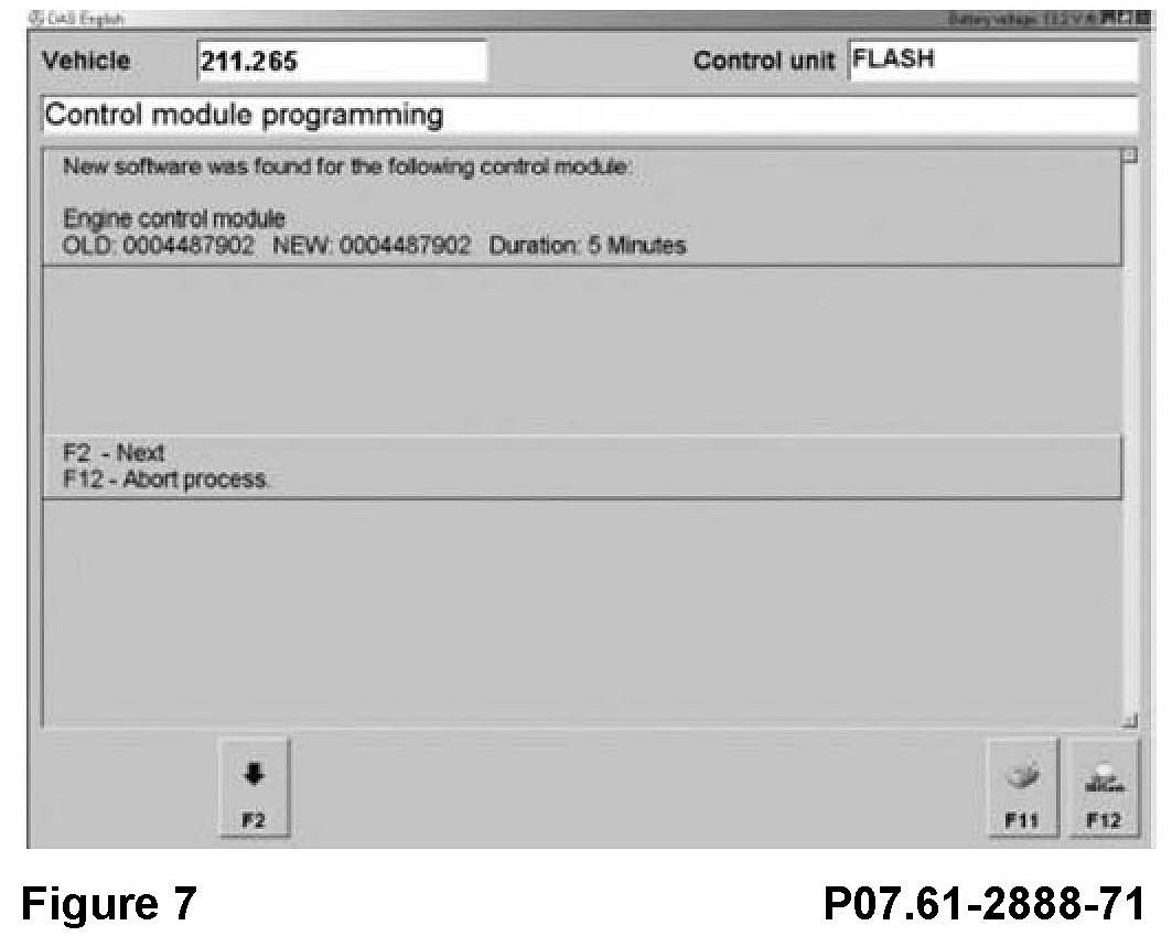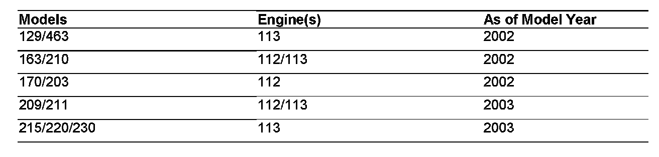 If a software update is necessary on the models listed in the table below, the update must be performed by flashing the existing control module in the vehicle using the Star Diagnosis (as of 11/02 release) together with the proper flashware CD. Please refer to the procedure for engine control module flashing instructions.