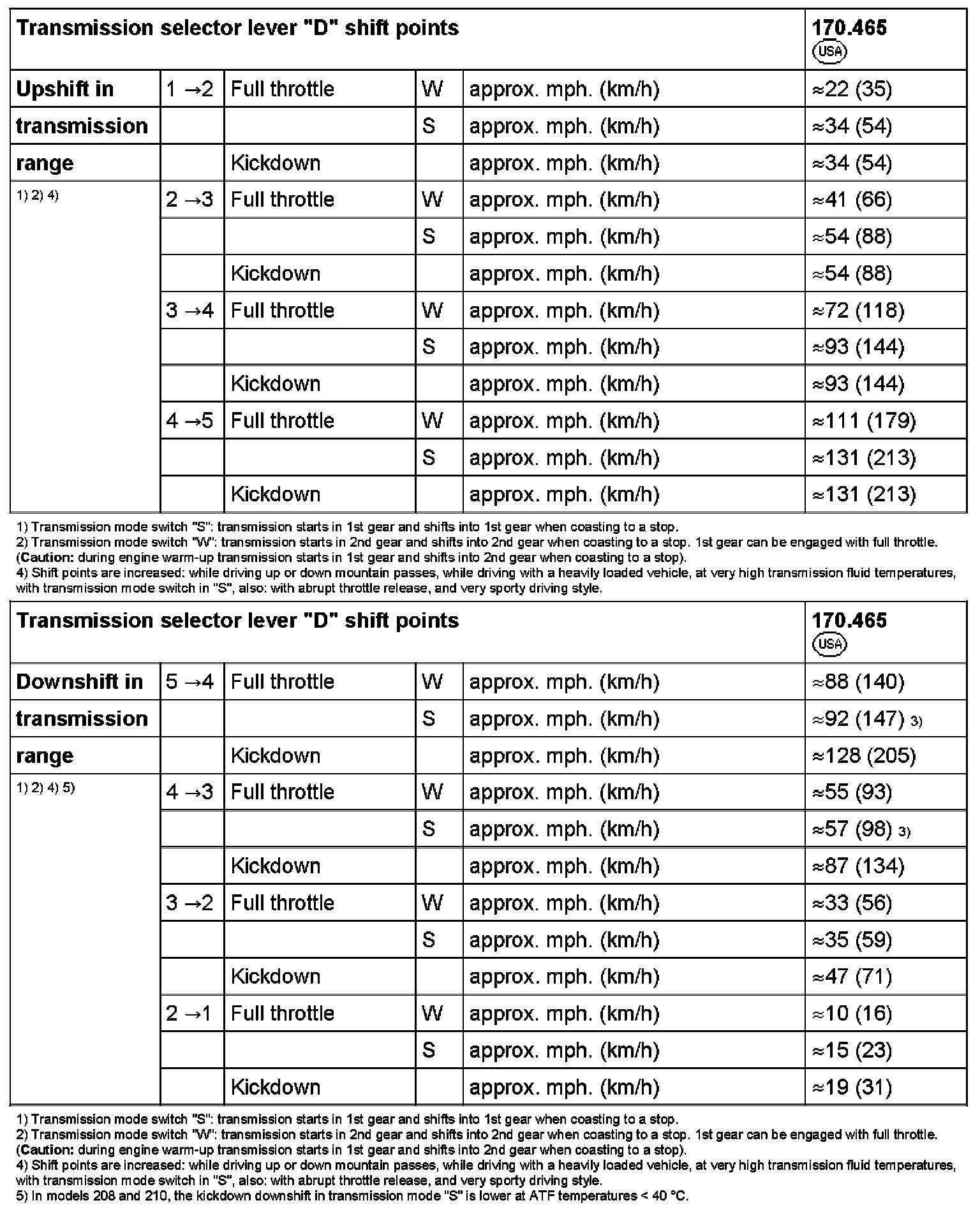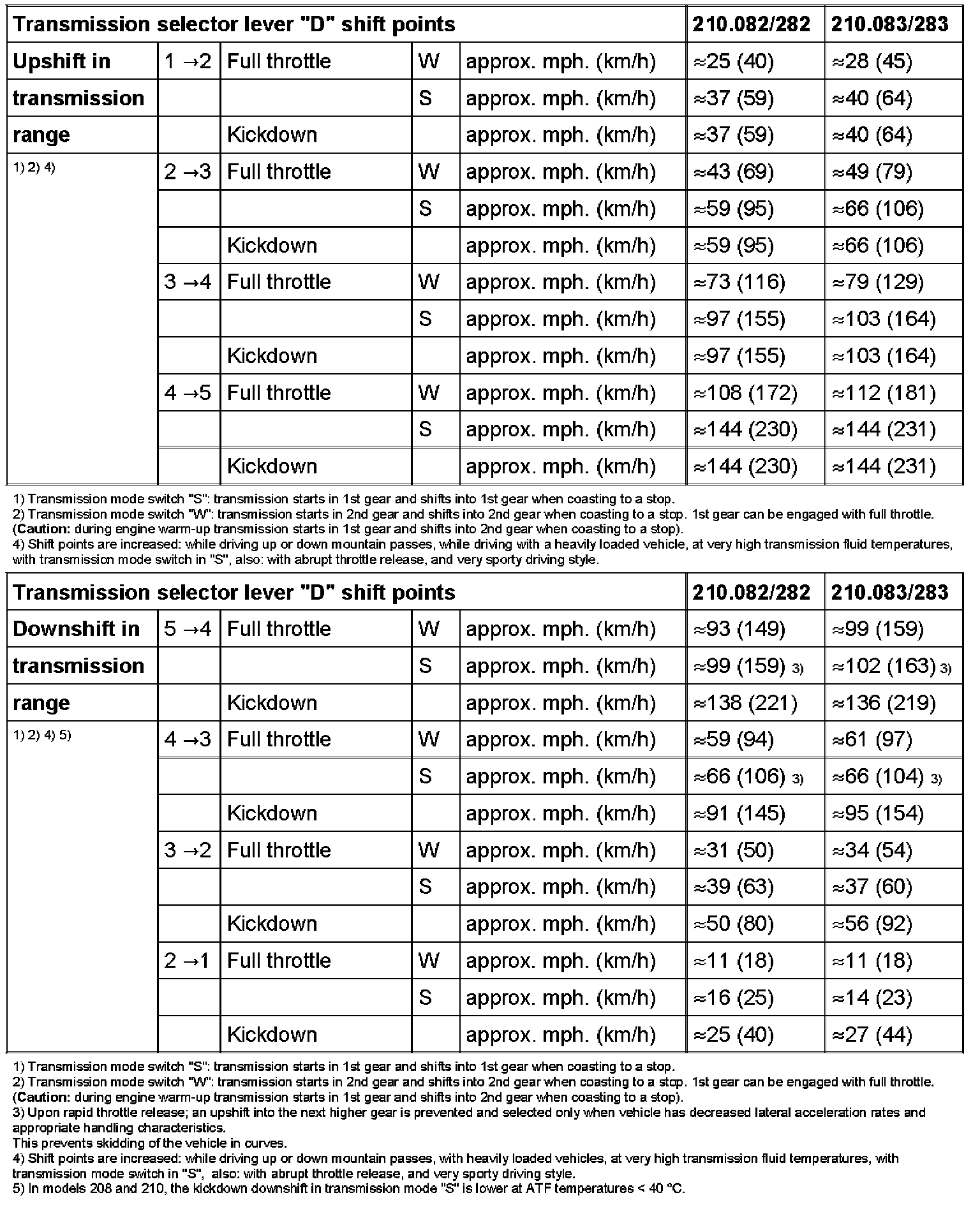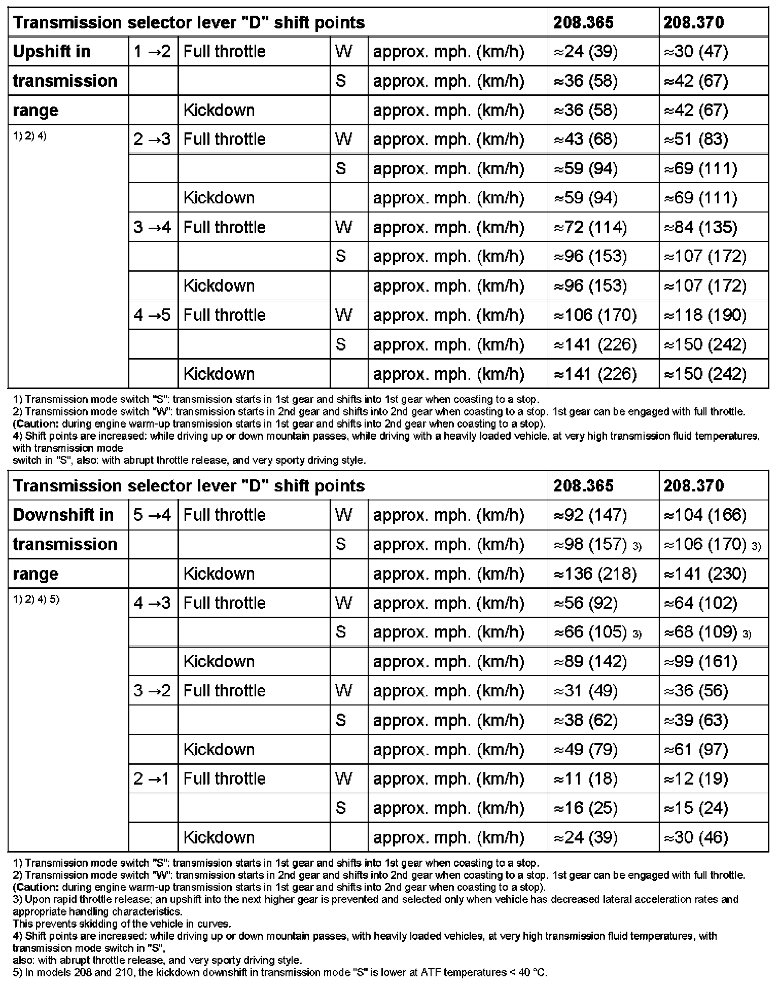 - Shift points are increased: While driving up or down mountain passes, with heavily loaded vehicles, at very high transmission fluid temperatures, with transmission mode switch in "S", also: with abrupt throttle release, and very sporty driving style.