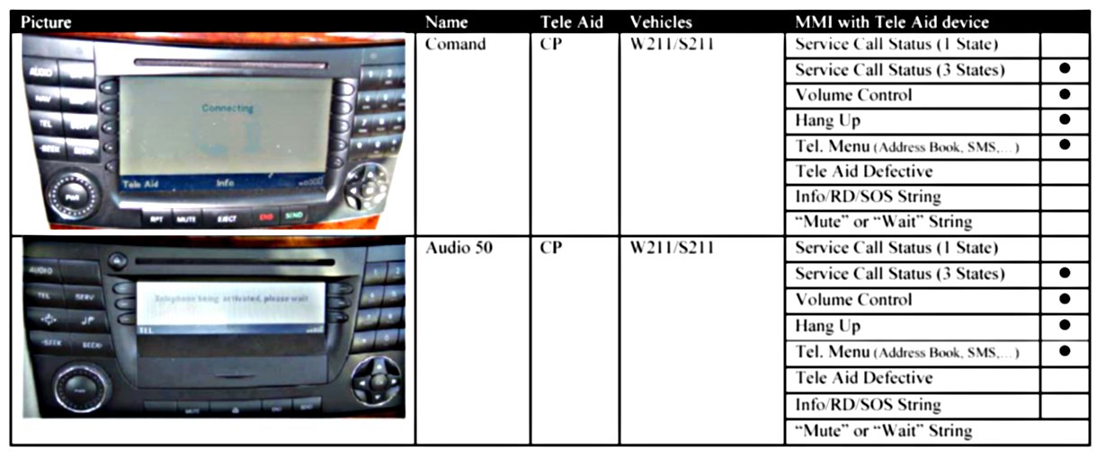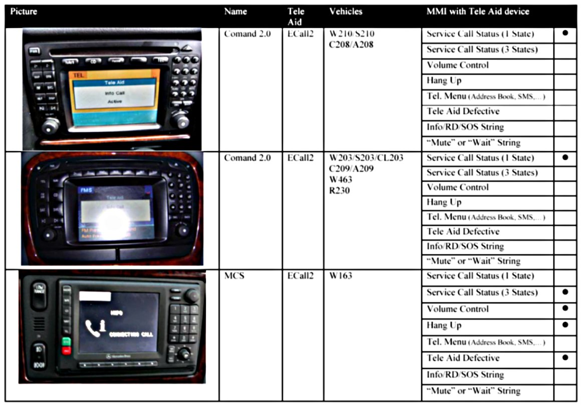 Info/RD/SOS String There is only a string like "Info/RD/SOS" displayed on the MMI component during the Tele Aid service calls.