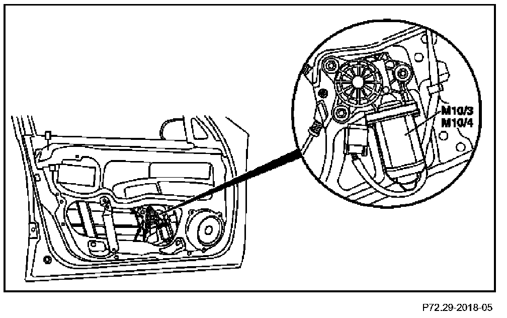 The left front power window motor (M10/3)/ right front power window motor (M10/4) is located in the driver's door / passenger door below the door liner.